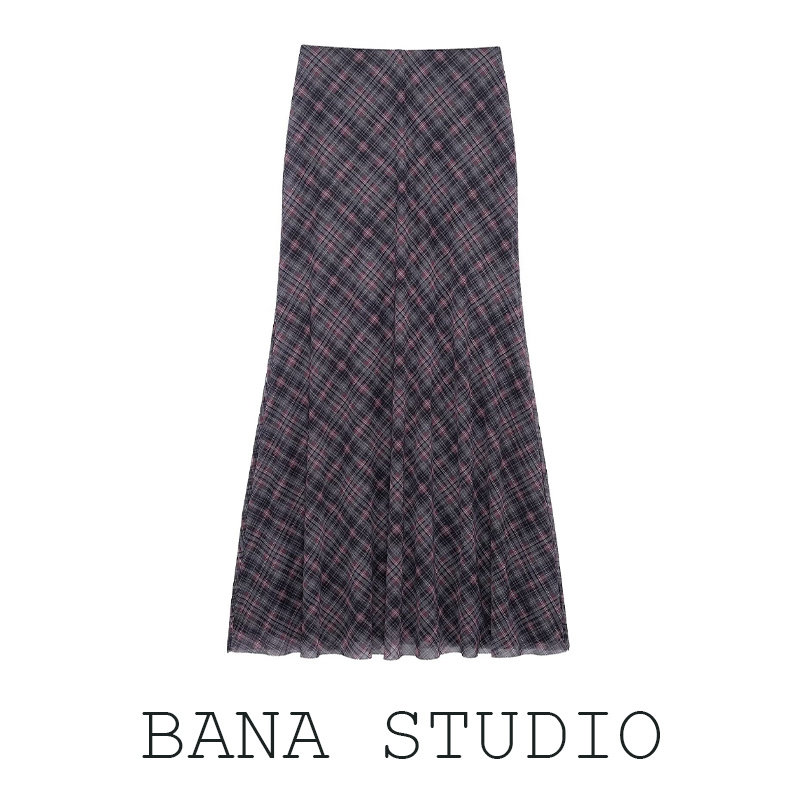 BANA西班牙外贸出口英伦格子网纱裙高腰包臀半身长裙半身裙女春夏