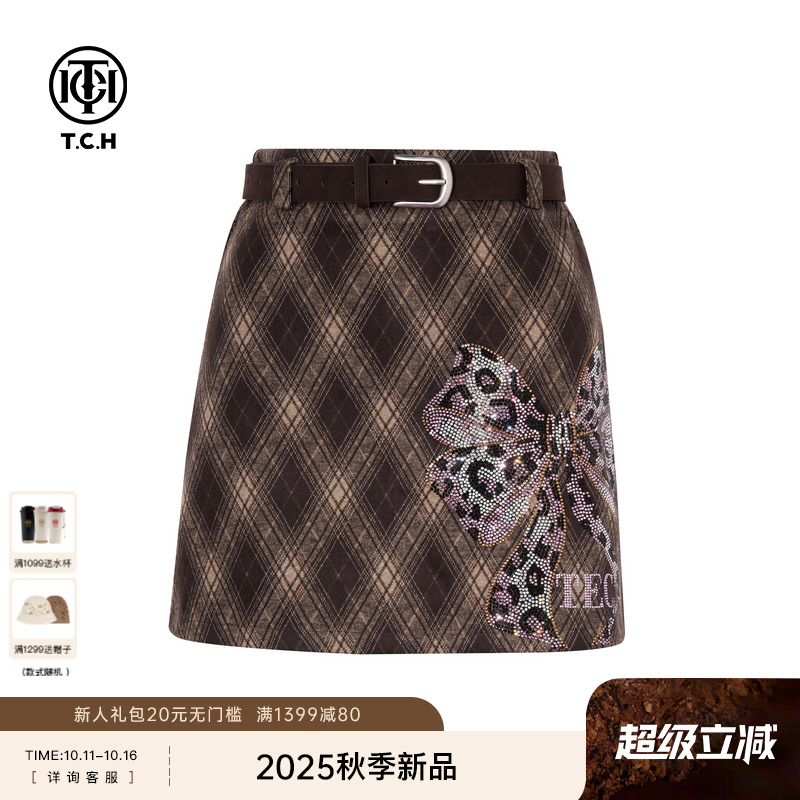 TCH私服烫钻半身裙女25秋季新款美拉德百搭格子包臀裙T75C22E1023
