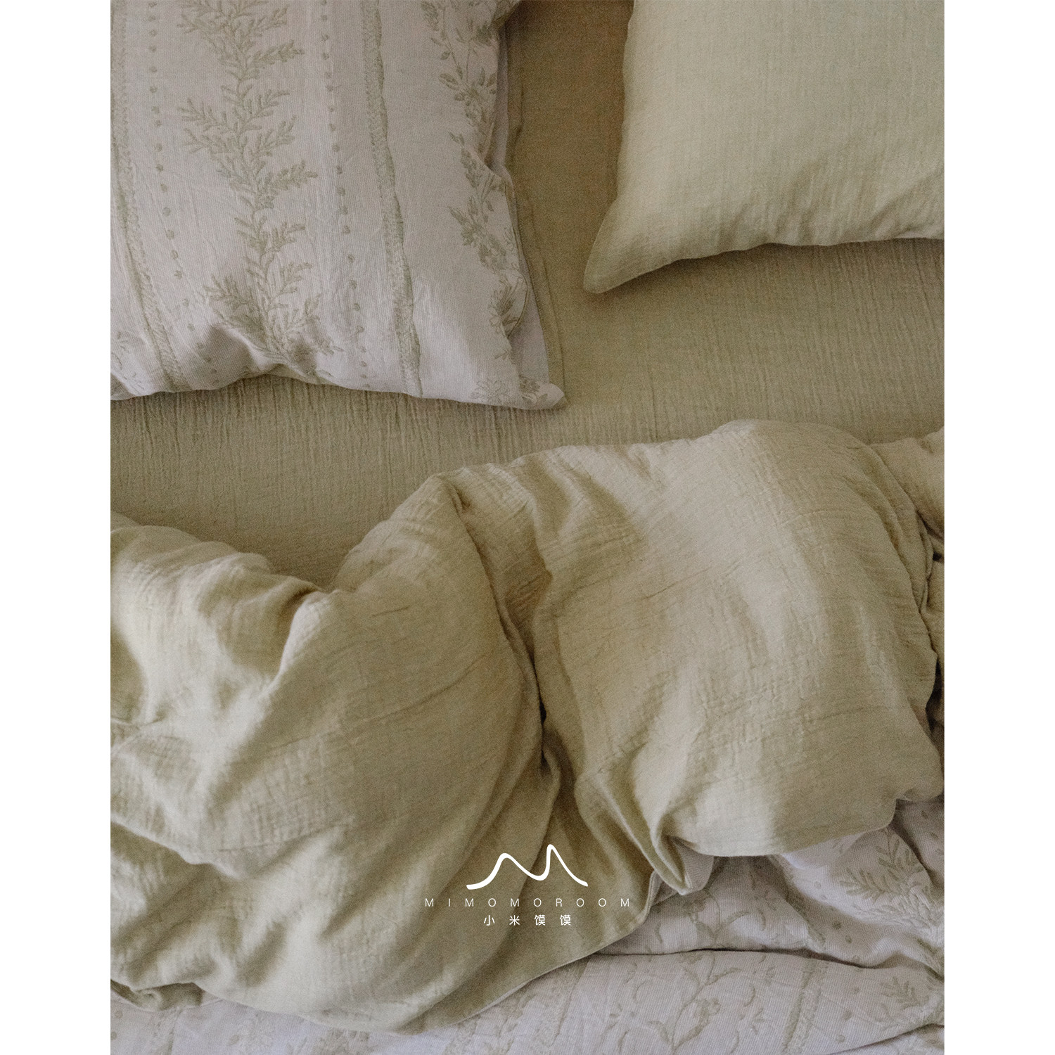晨光苇影 加厚纯棉皱皱纱清新豆绿碎花四件套简约卧室1.8床单被套