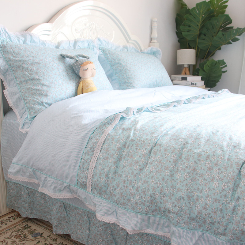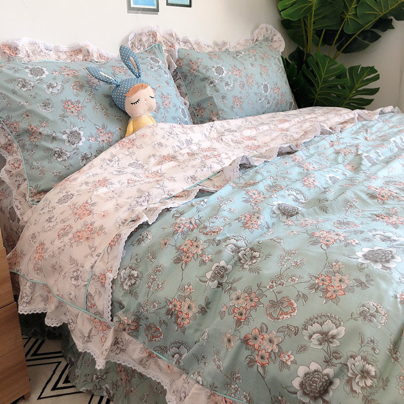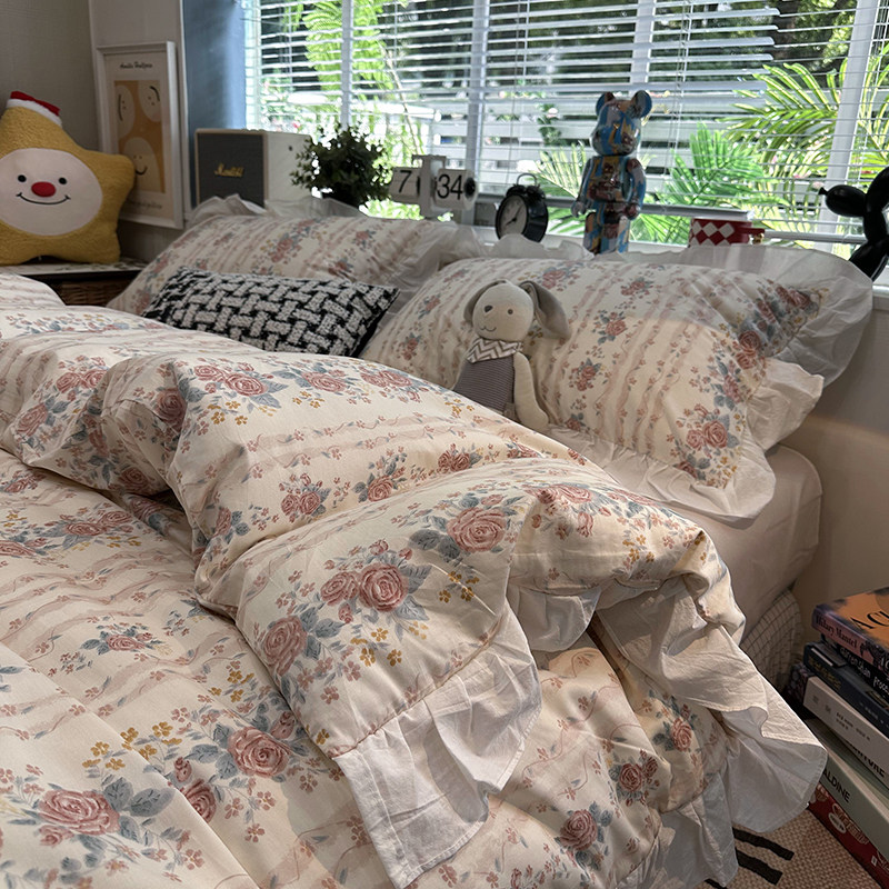 ins小碎花四件套花边水洗棉夏季双人被套床笠床单人学生三件套1.5