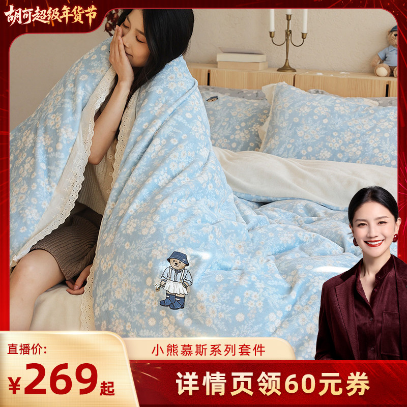 【胡可直播间】TeenieWeenie秋冬季保暖加厚小碎花牛奶绒四件套