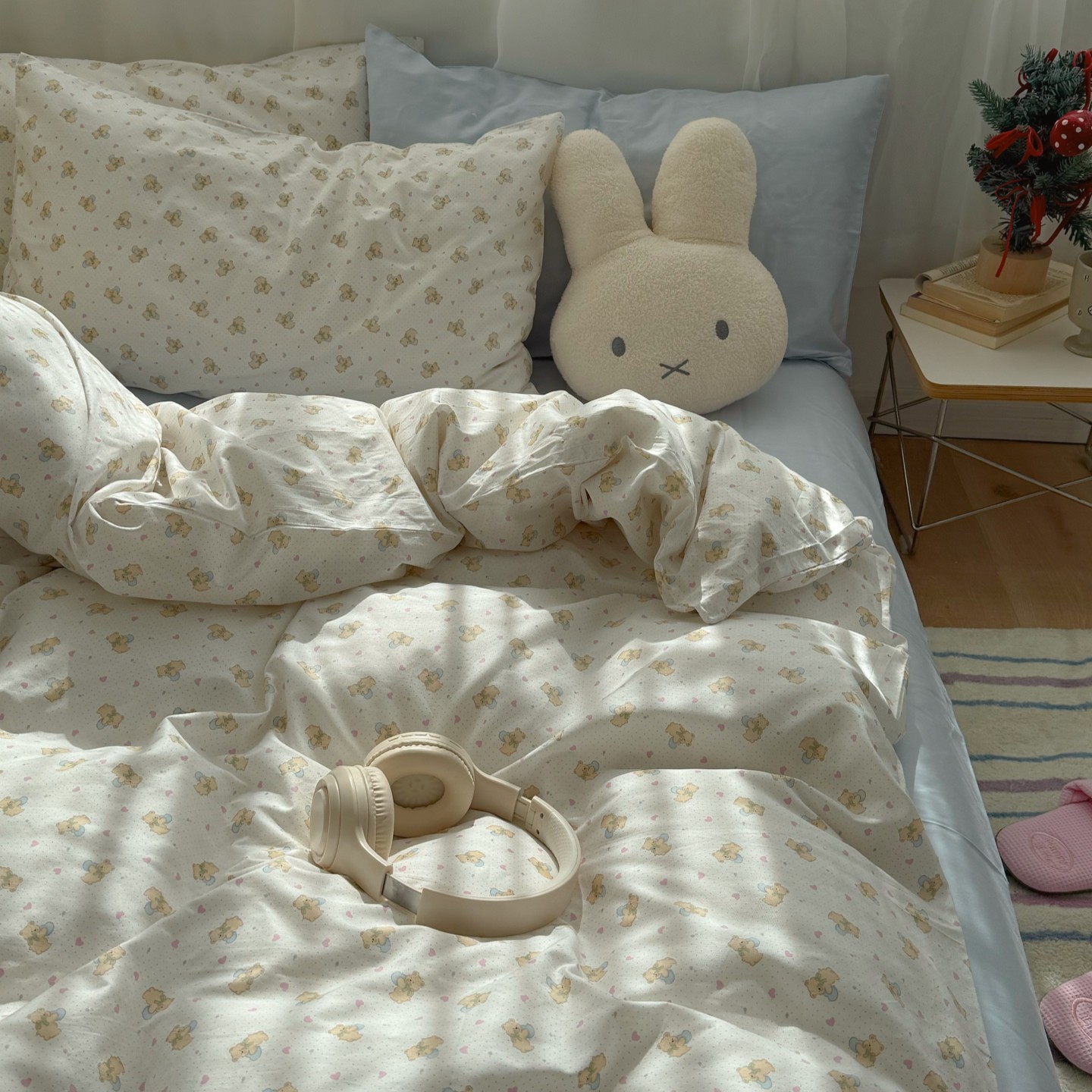 梨梦 告白熊 可爱纯棉小碎花四件套全棉床单被套床笠宿舍床上用品