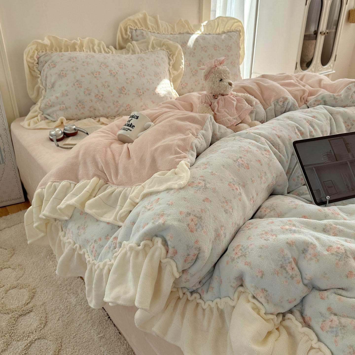 雾岛听风 韩系慵懒风秋冬保暖加厚牛奶绒碎花四件套珊瑚绒三件套