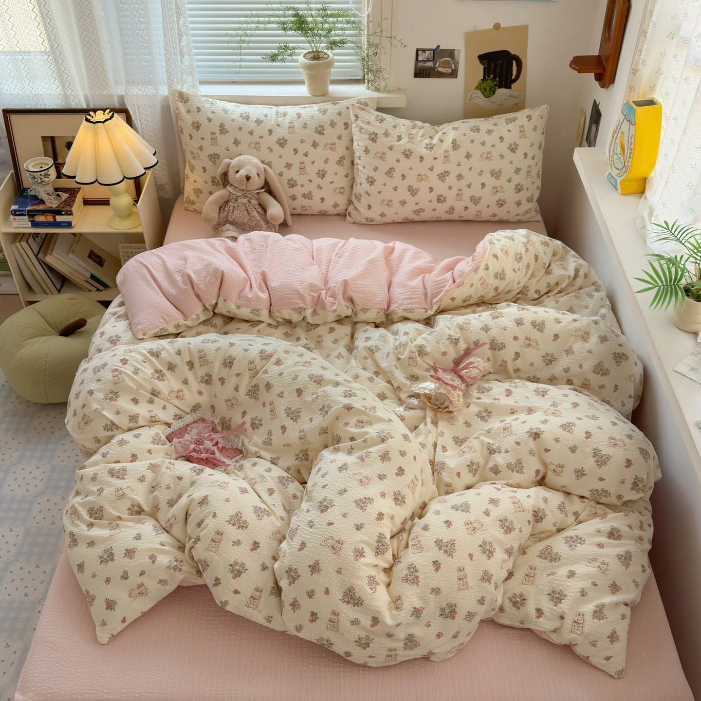 甜甜酱小兔·清新少女碎花纯棉双层纱四件套宿舍床笠床单被套新品