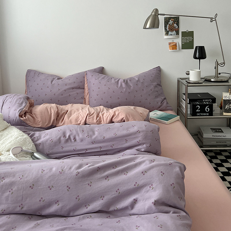 TeenieWeenie韩版全棉碎花四件套田园风四季通用纯棉紫色床单被套
