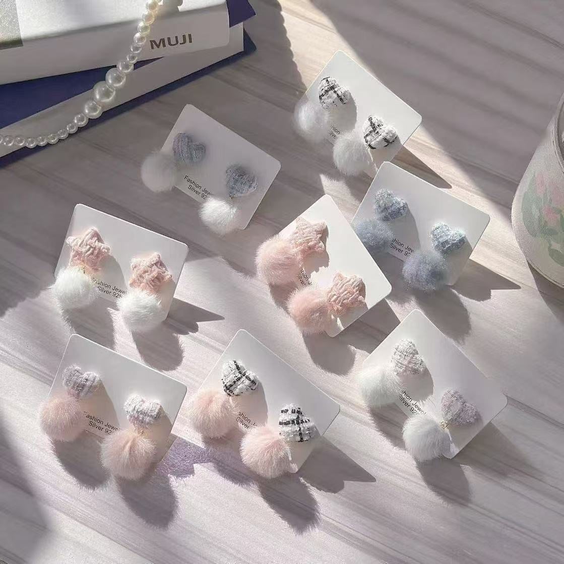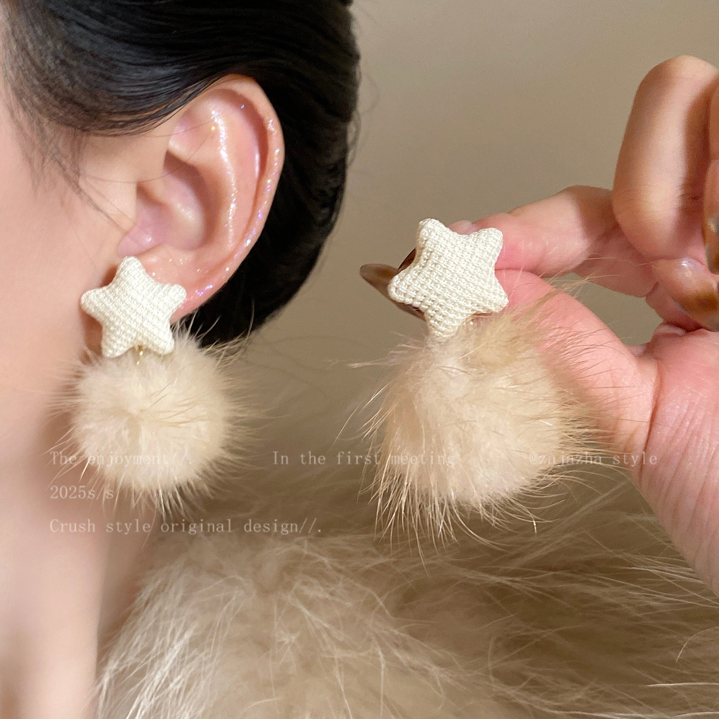 适合冬天的毛绒星星耳环女小众设计俏皮毛球耳钉秋冬可爱甜美耳饰