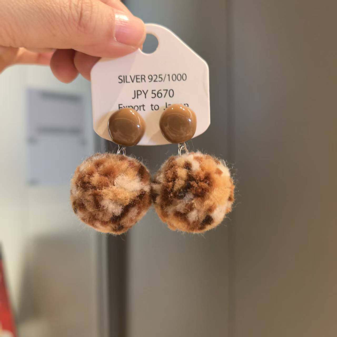 豹纹毛球耳环女秋冬款气质耳钉2025新款爆款耳夹无耳洞高级感耳饰