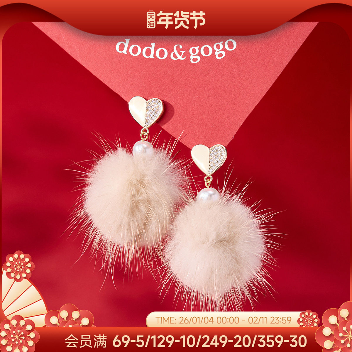DODOGOGO适合冬天的毛球耳环女气质独特漂亮耳钉2025新款毛绒耳饰