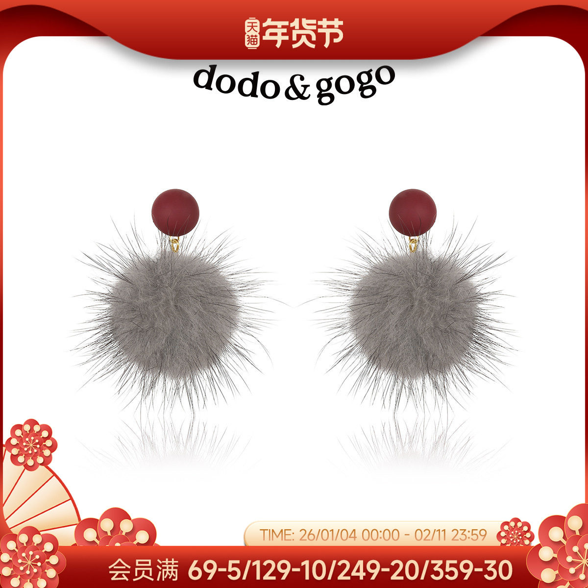 DODOGOGO毛球耳钉秋冬毛绒耳环女2025新款适合冬天的时尚耳饰耳坠