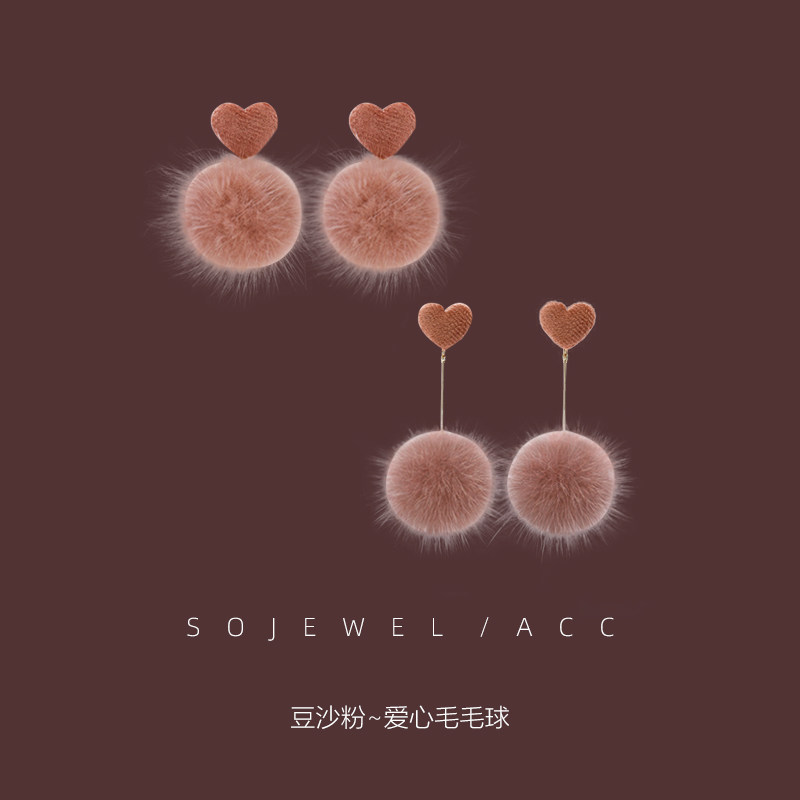 原创拉德爱心毛球耳环设计甜美毛绒耳钉少女耳饰秋冬气质高级耳坠