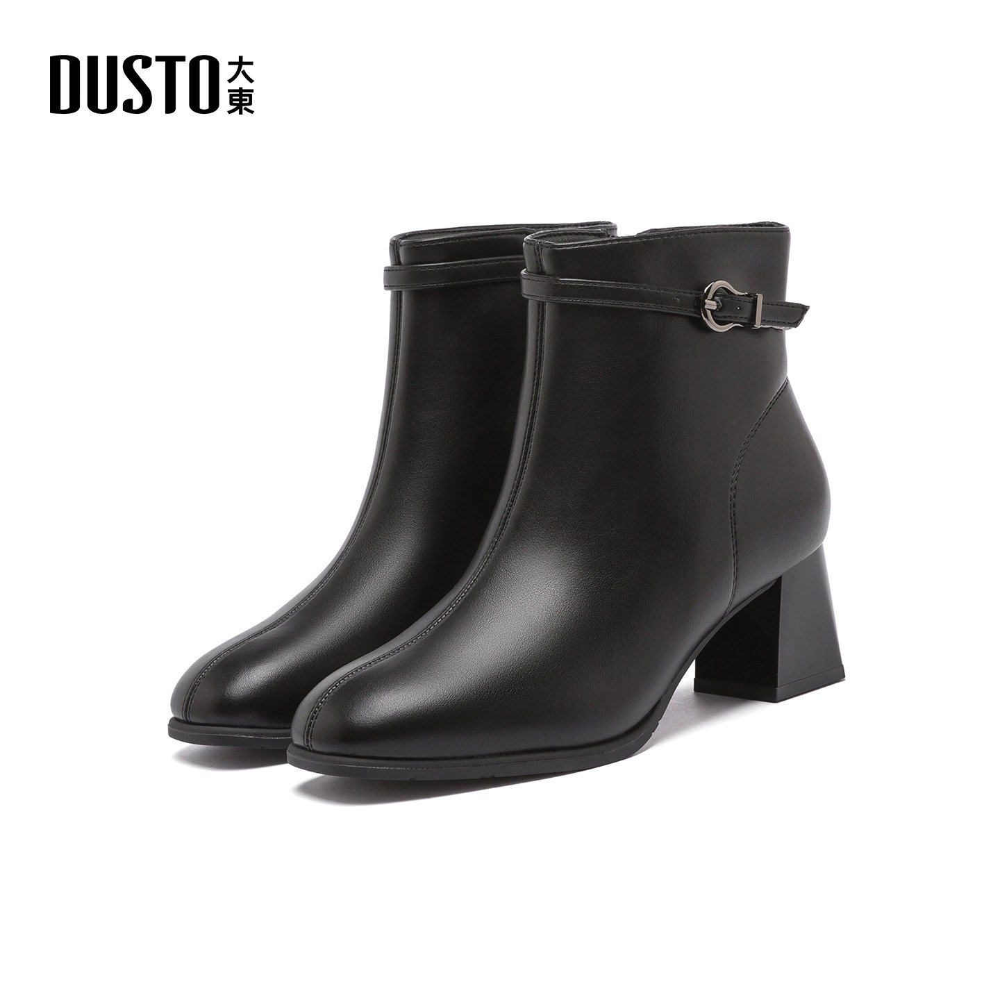 - 马丁靴女 短靴 粗跟 侧拉链