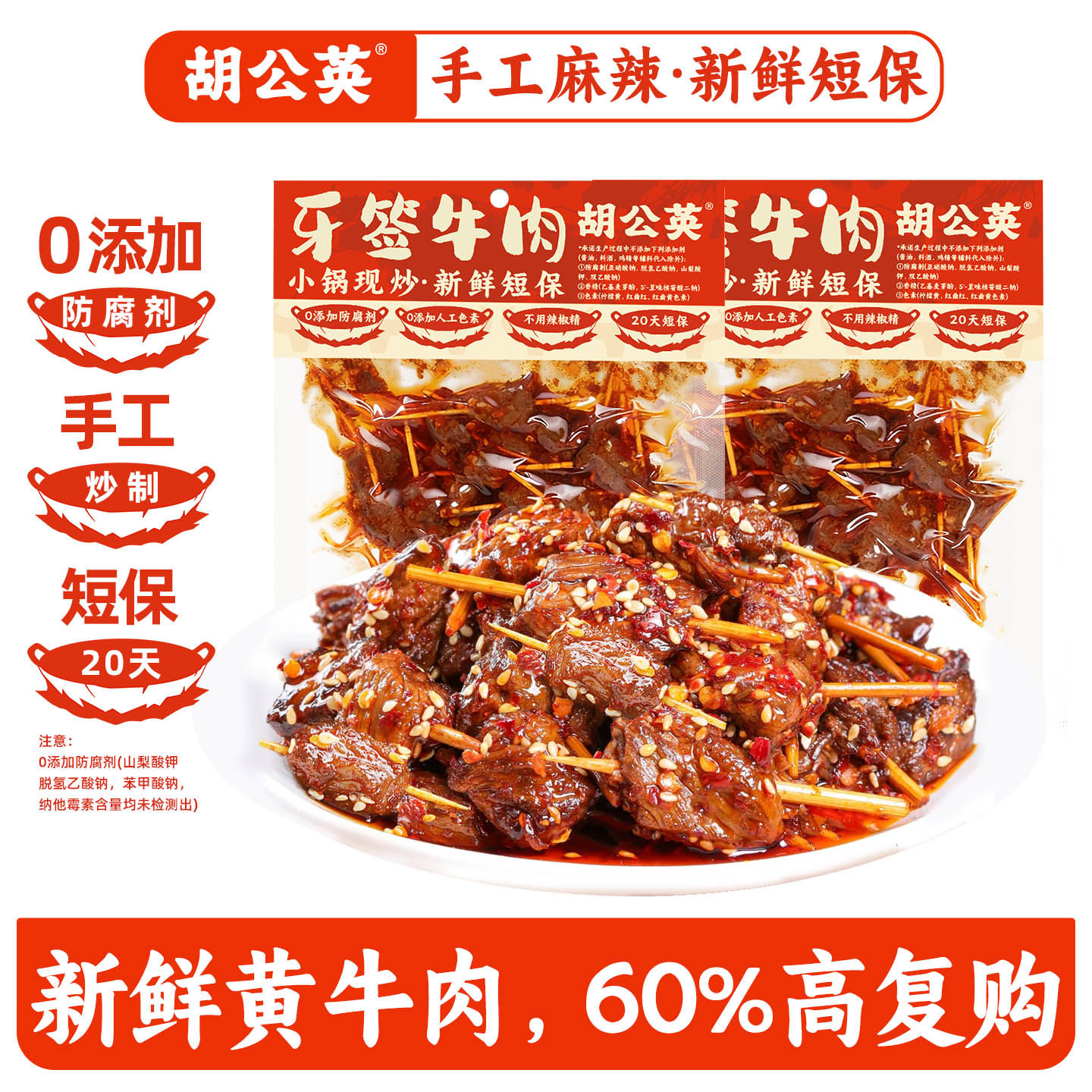 胡公英牙签牛肉60g袋装爆辣湖南特产麻辣香辣牛肉0添加防腐剂