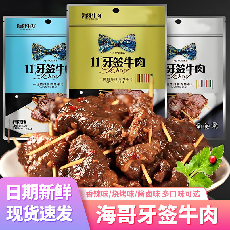 湖南特产清真食品海哥牛肉香辣味熟食11度牙签牛肉干袋装麻辣零食