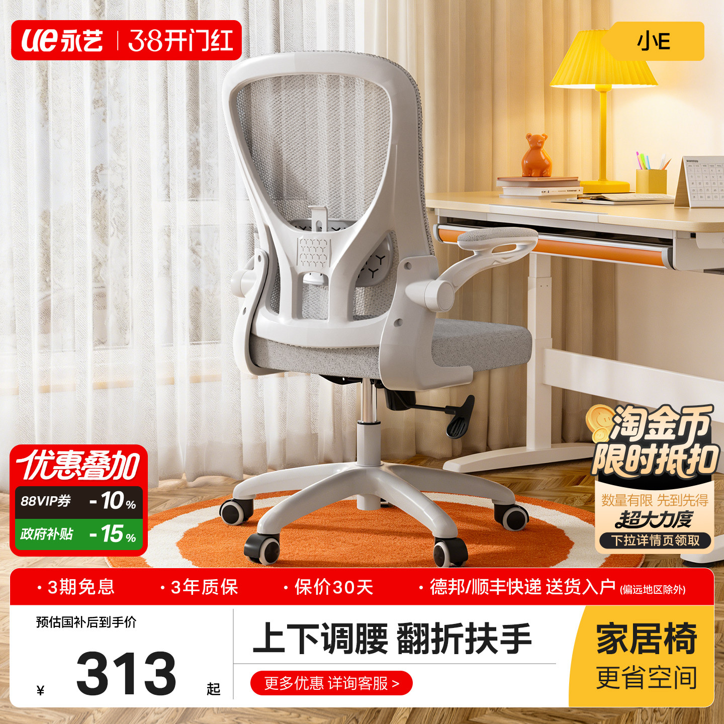 ue永艺学生椅小E写字椅家用书桌靠背办公椅小型电脑椅宿舍椅子