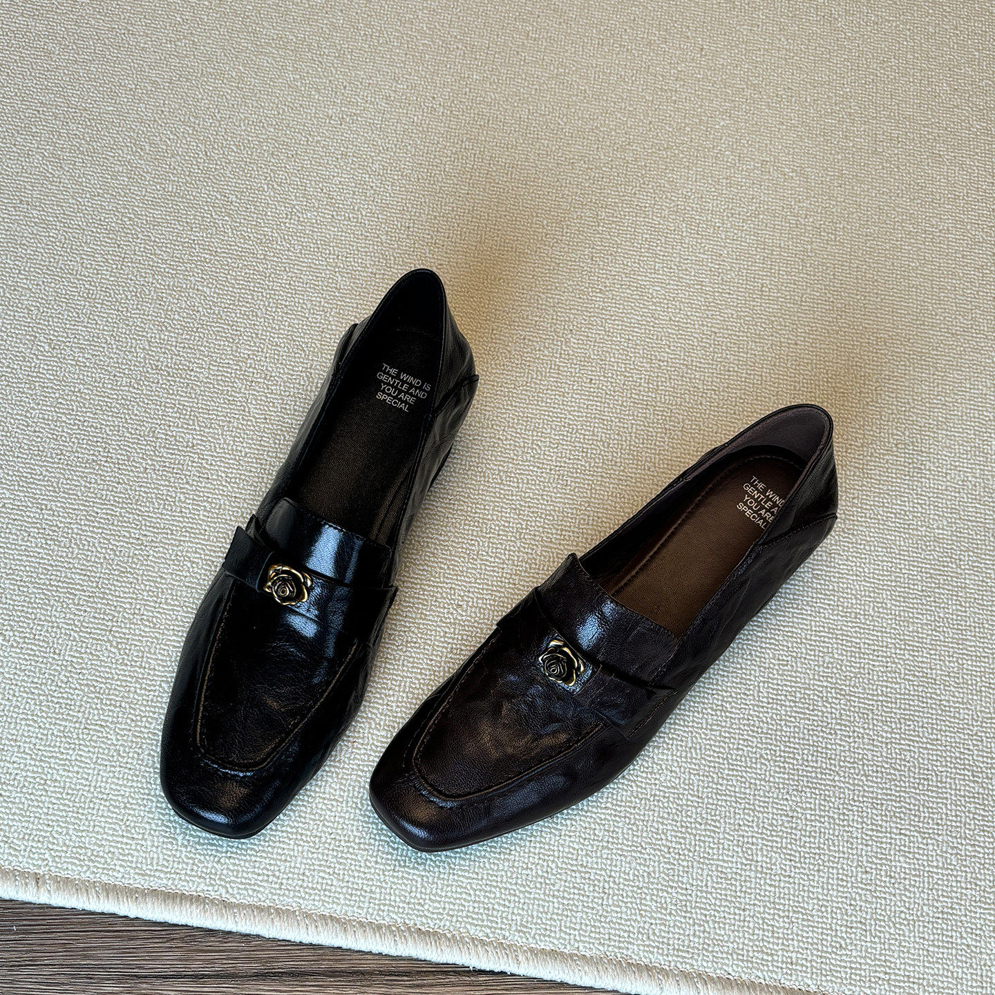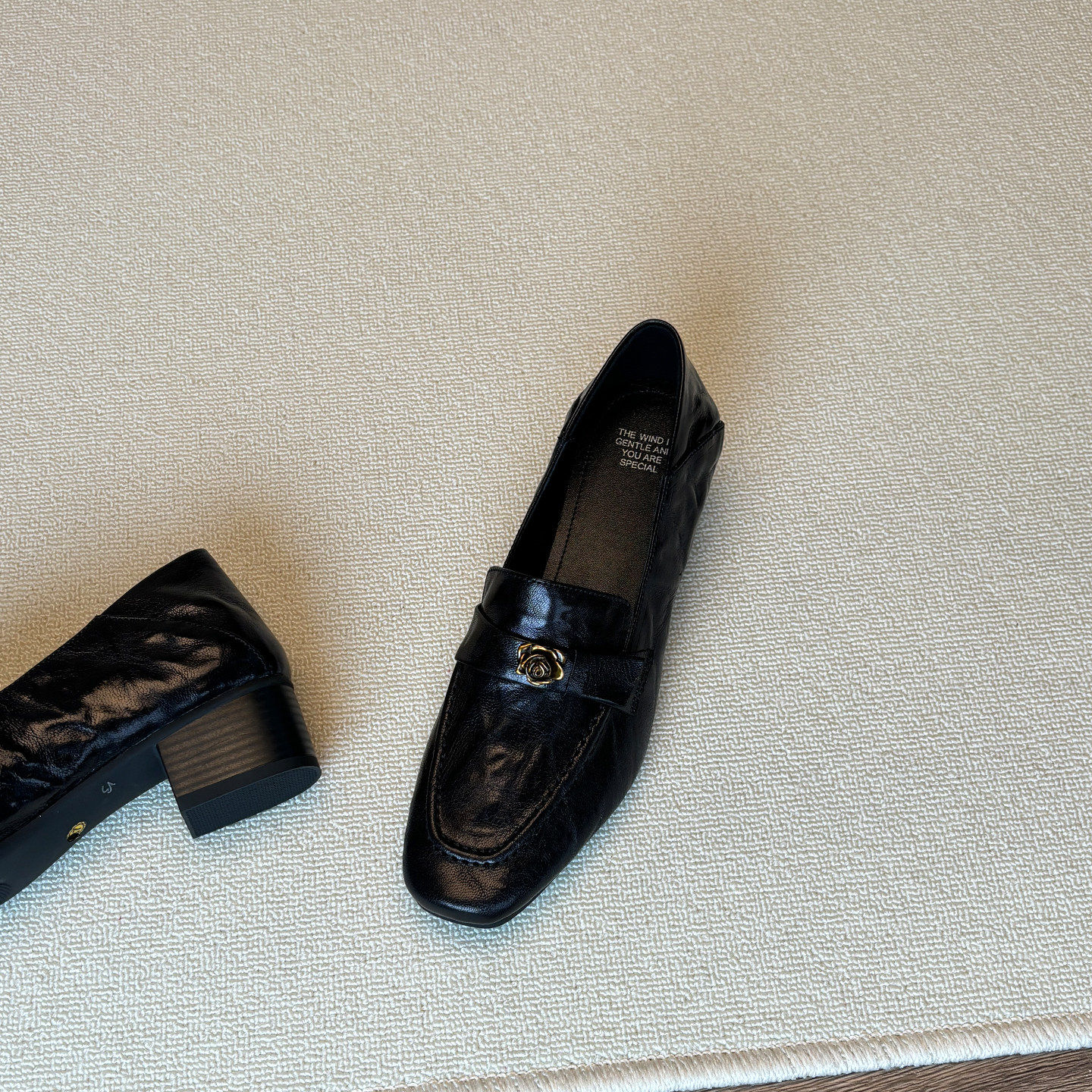 巨软羊皮~山茶花乐福鞋女英伦复古方头中跟小皮鞋百搭舒适不累脚