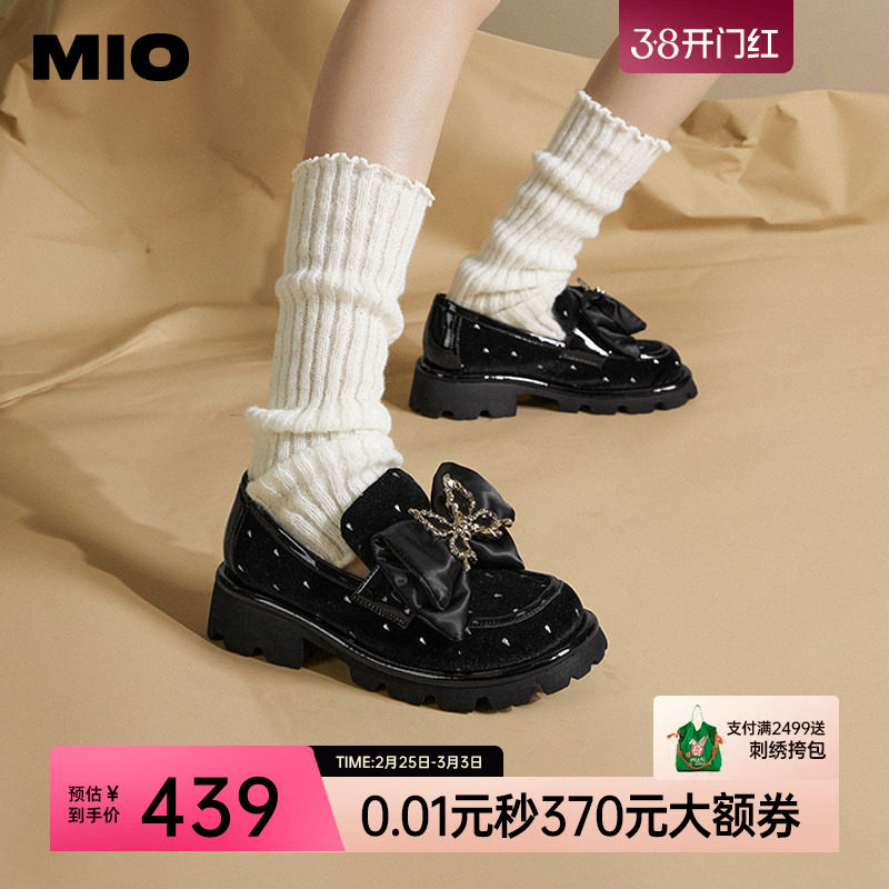 【董璇同款】千百度中跟厚底乐福鞋女百搭增高通勤小皮鞋深口单鞋