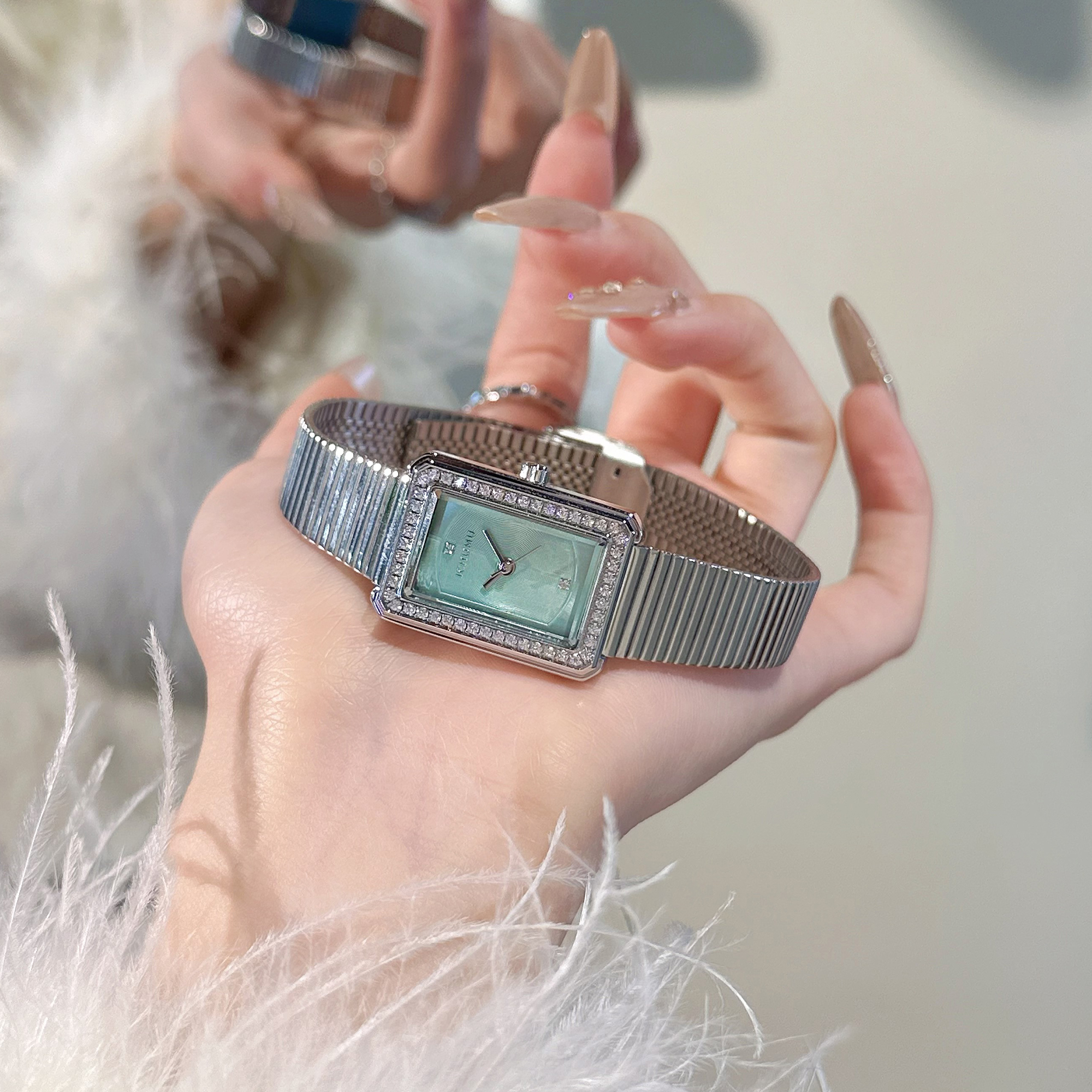 冷淡风小表盘手表女款简约气质小众轻奢高级感精致钢带方形石英表