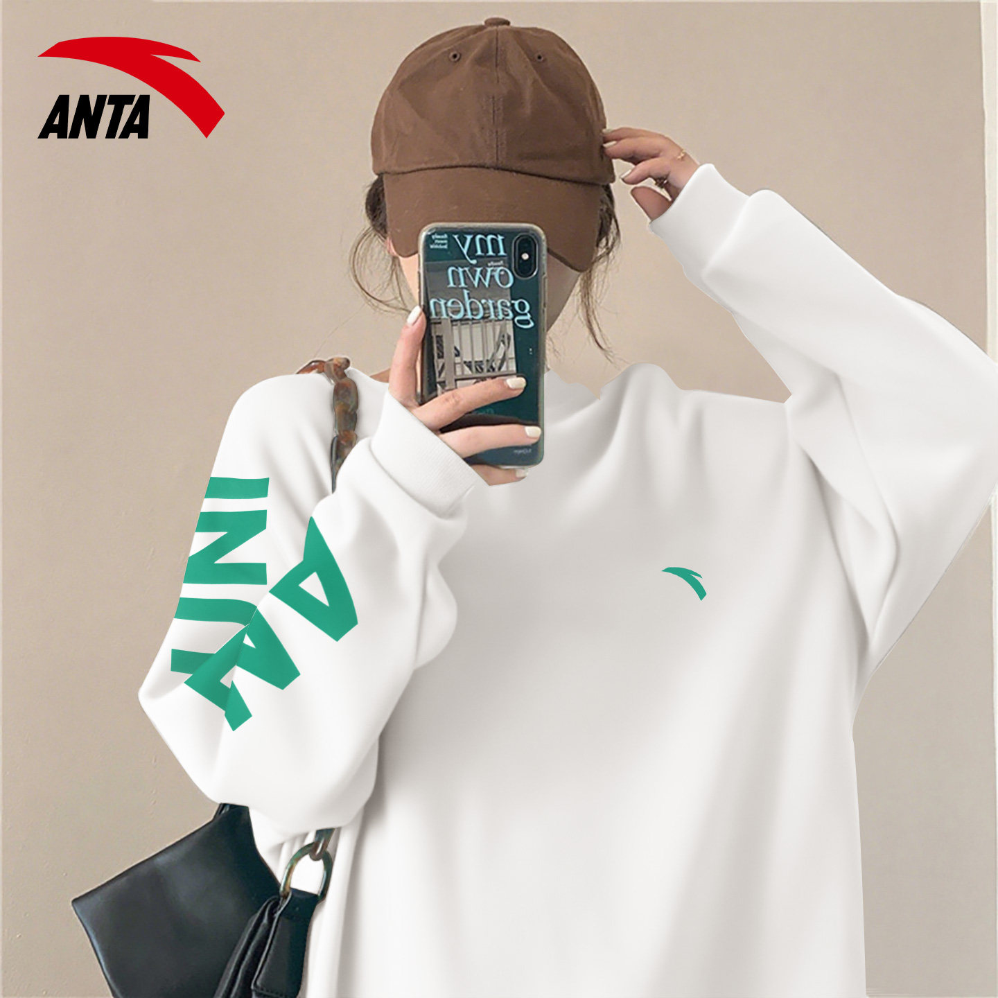 安踏卫衣女2026新款爆款宽松大码胖mm女学生印花洋气圆领长袖上衣