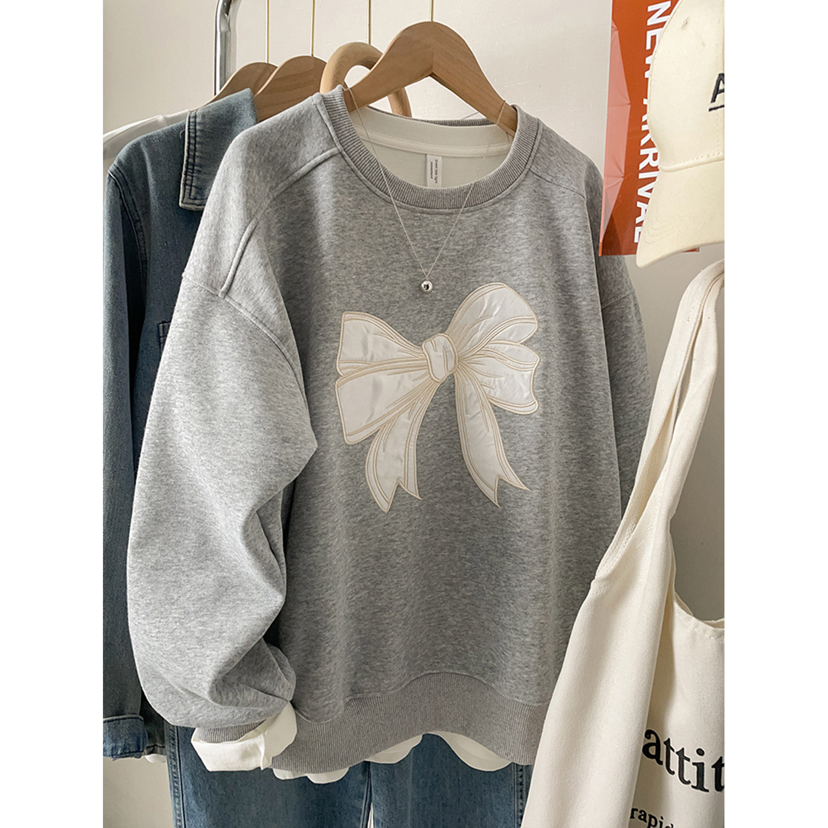 卫衣女2026新款爆款春小个子灰色印花民族风胖mm宽松显瘦圆领上衣