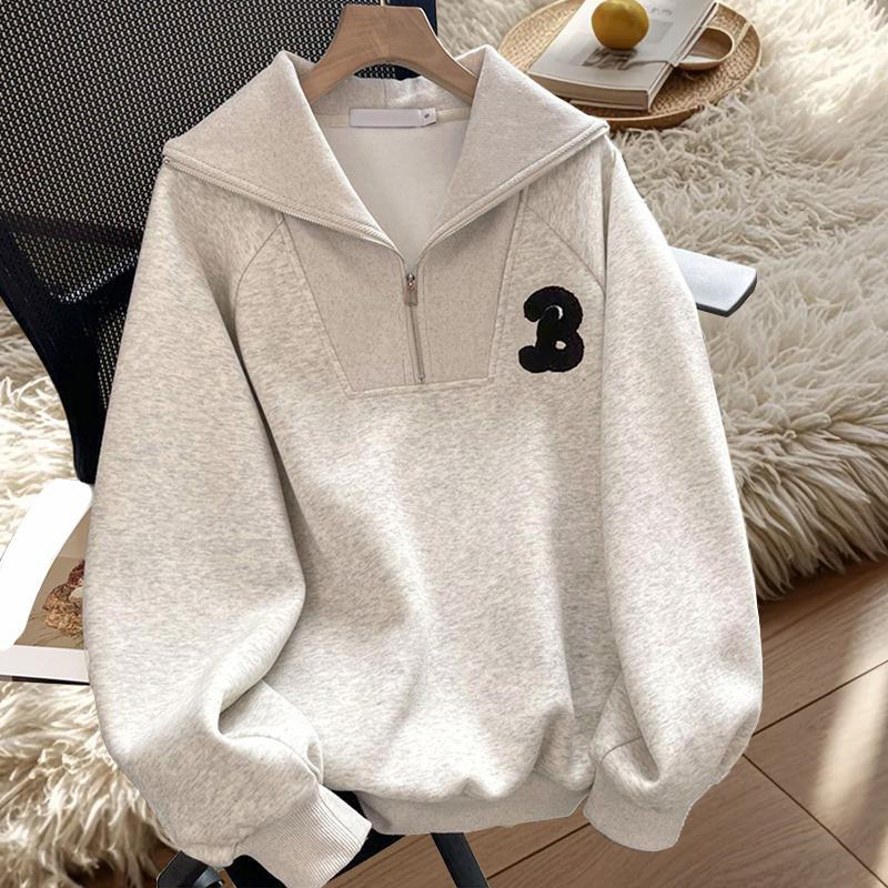 大码胖mm美式潮流宽松半拉链翻领卫衣女秋冬2026新款显瘦遮肉上衣