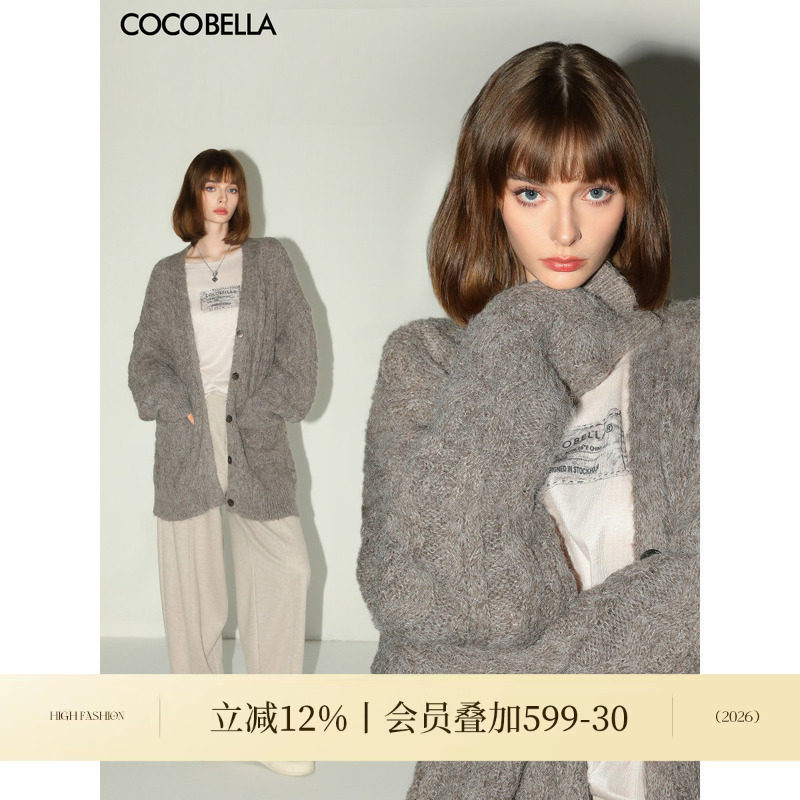 COCOBELLA绞花纹粗针花纱长款针织开衫女加厚保暖毛衣外套MZ0065