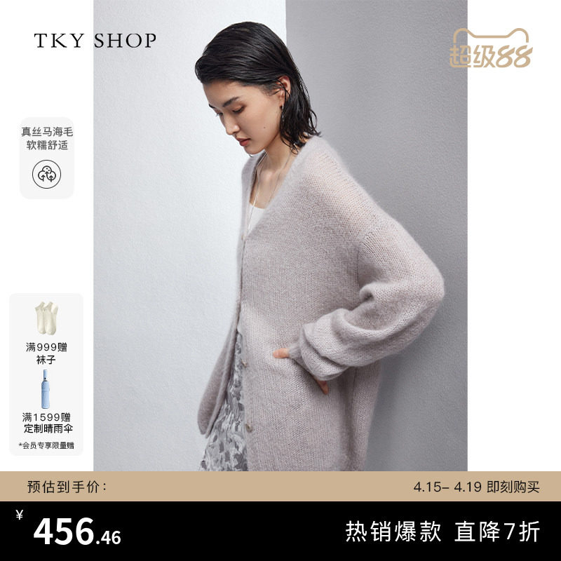 TKY SHOP慵懒风马海毛针织开衫女桑蚕丝上衣春季长款宽松休闲毛衣