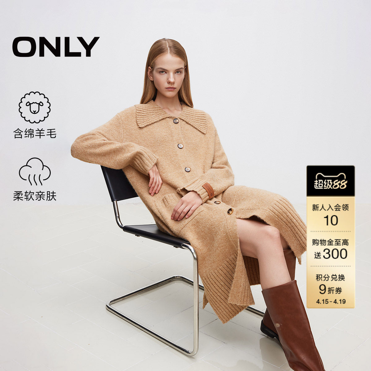 【ONLY奥莱】春季慵懒松弛立体宽松翻领落肩开衫中长款针织衫女