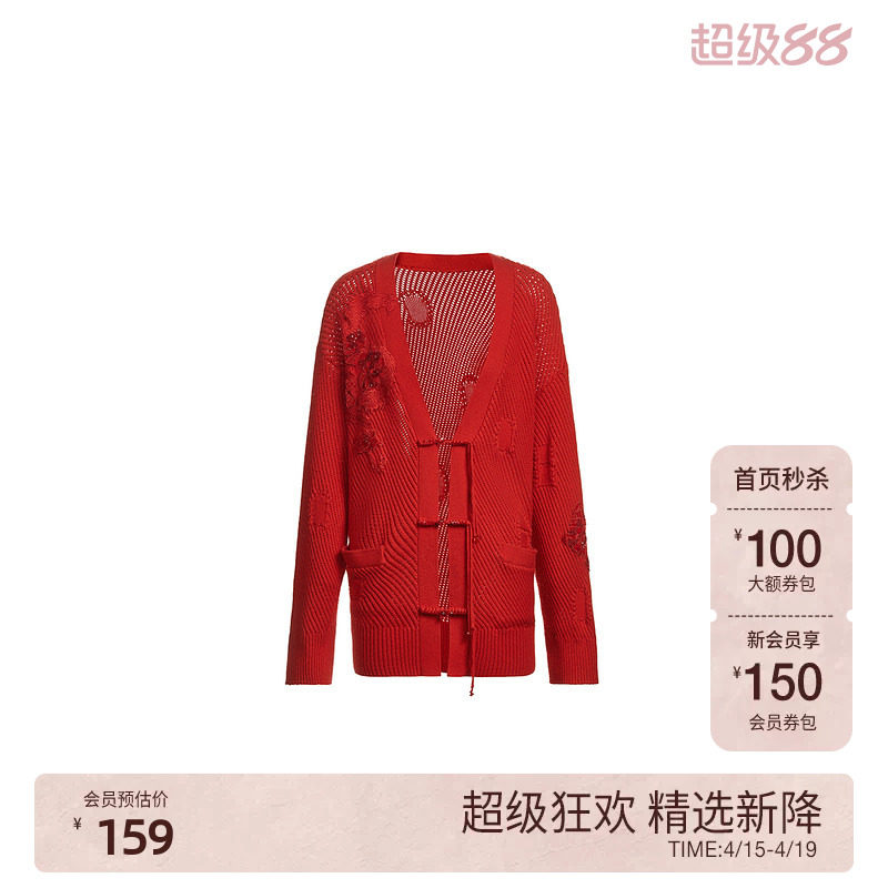 新中式盘扣针织外套女 欧时力中长款开衫 2024新款早春国风绣花