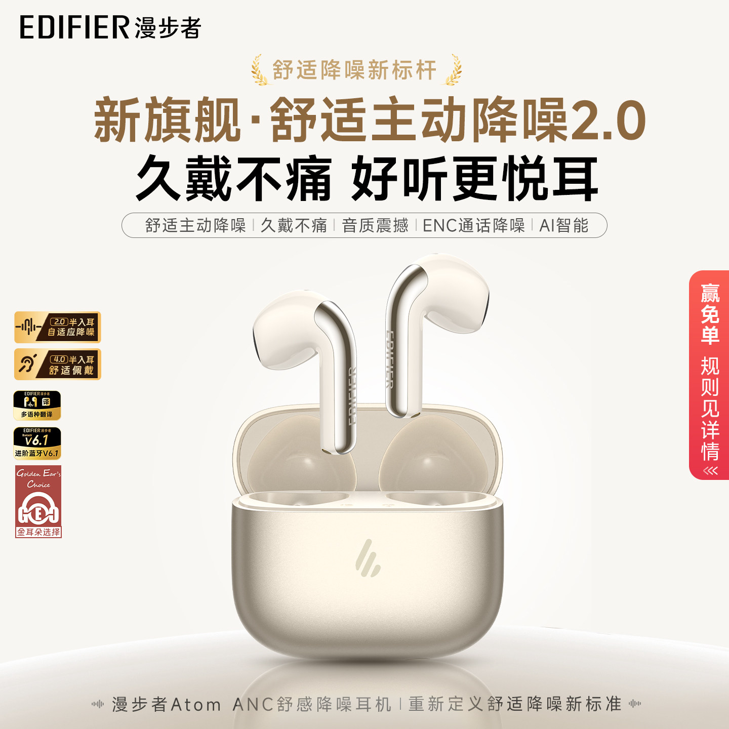 漫步者原子豆anc蓝牙耳机降噪半入耳无线运动续航2025新款AtomANC