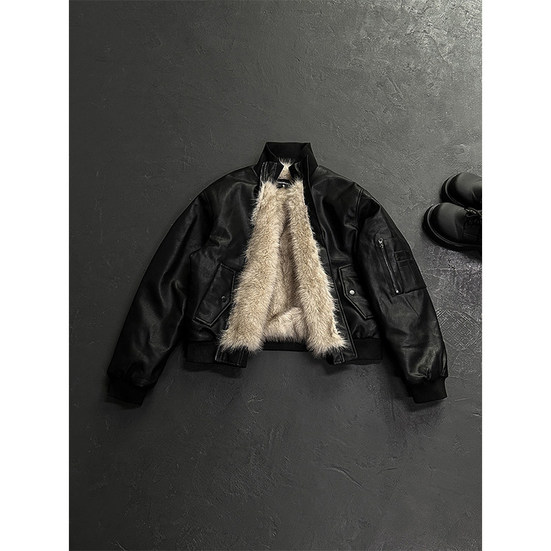 - 羊羔毛麂皮绒外套 女