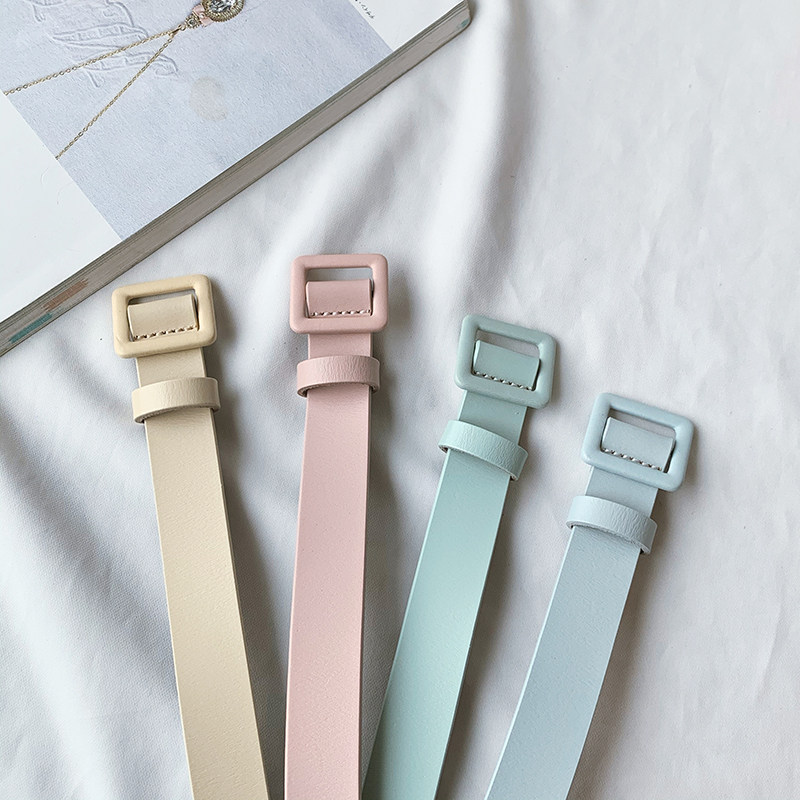 简约百搭方扣马卡龙色真皮小腰带女配裙子牛仔裤装饰连衣裙牛皮带