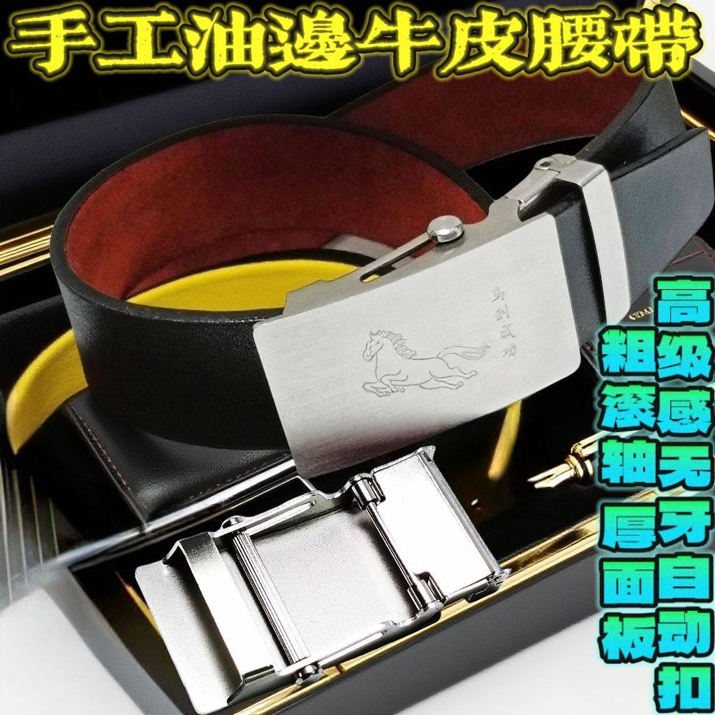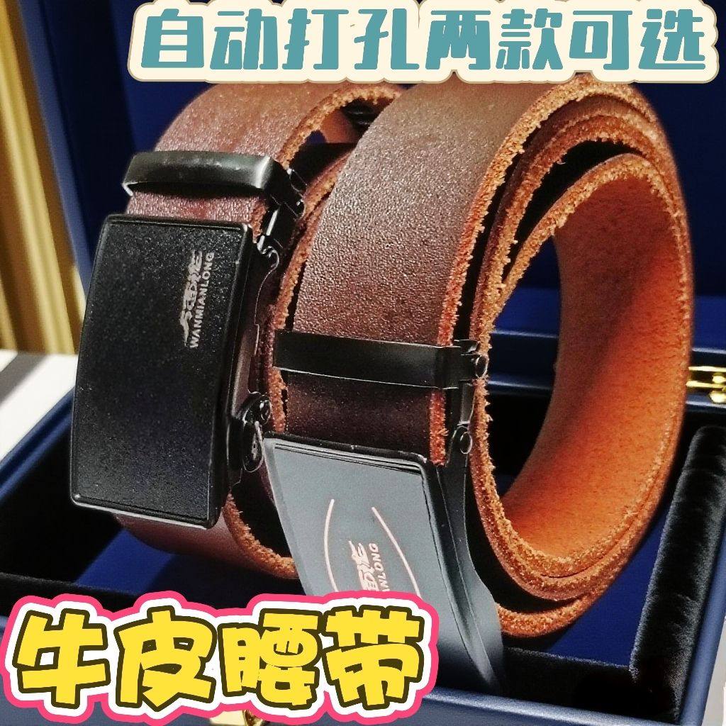 男士休闲经典牛皮带自动扣正品真皮孔扣腰带打眼裤带单层整张切割
