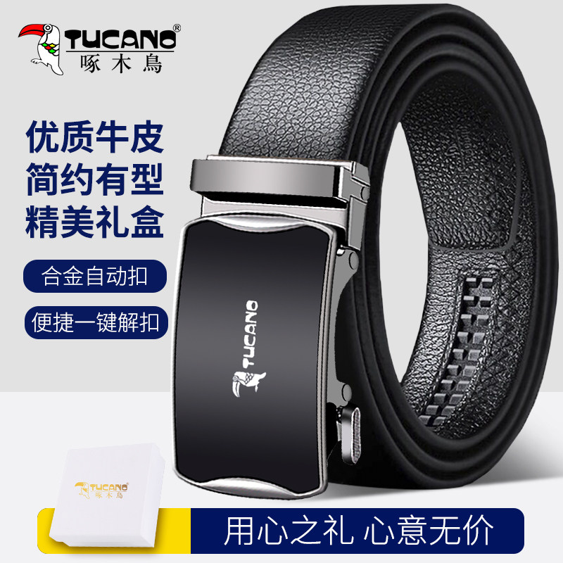 啄木鸟皮带男真皮不带头带条自动扣牛皮裤带男士腰带裤腰带正品潮