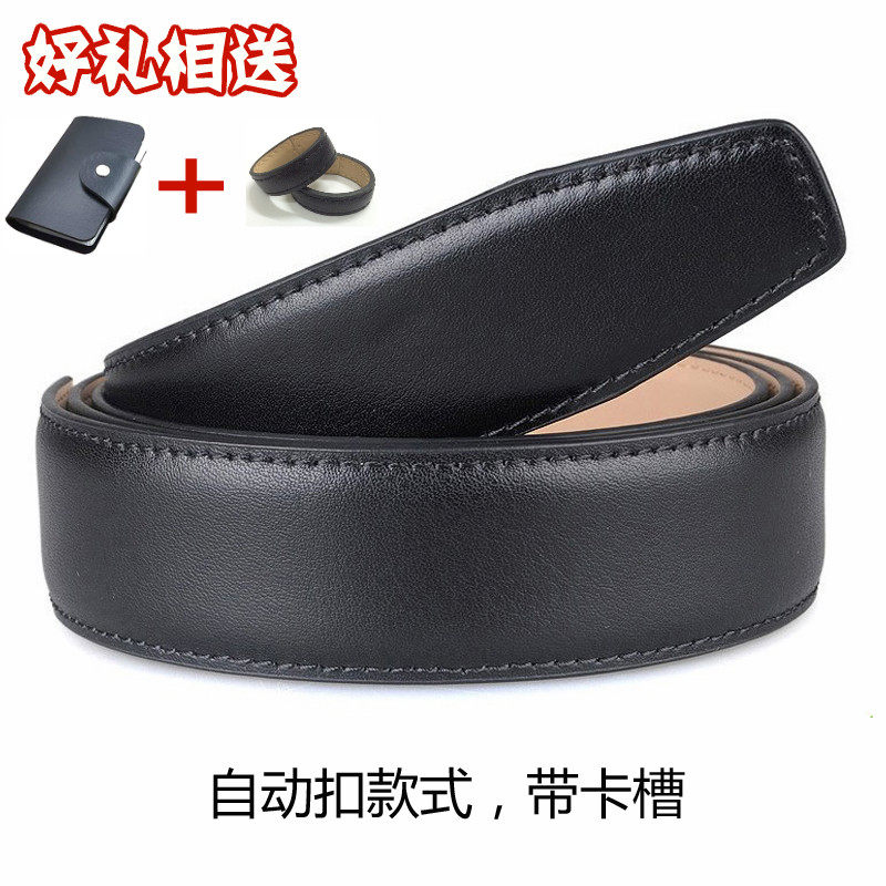 男士自动扣无头皮带条头层牛皮带卡槽皮带身真皮不带头皮带3.5cm