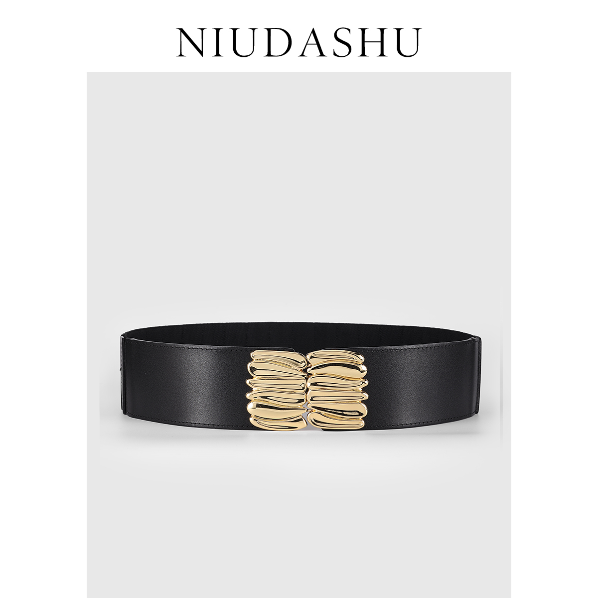 头层牛皮带女真皮装饰小众设计感挂钩弹力腰封显瘦配外套腰带女黑