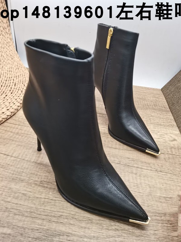 钎金鸟6665-3尖头细高跟短靴女冬季黑色侧拉链绒面简约气质时装靴
