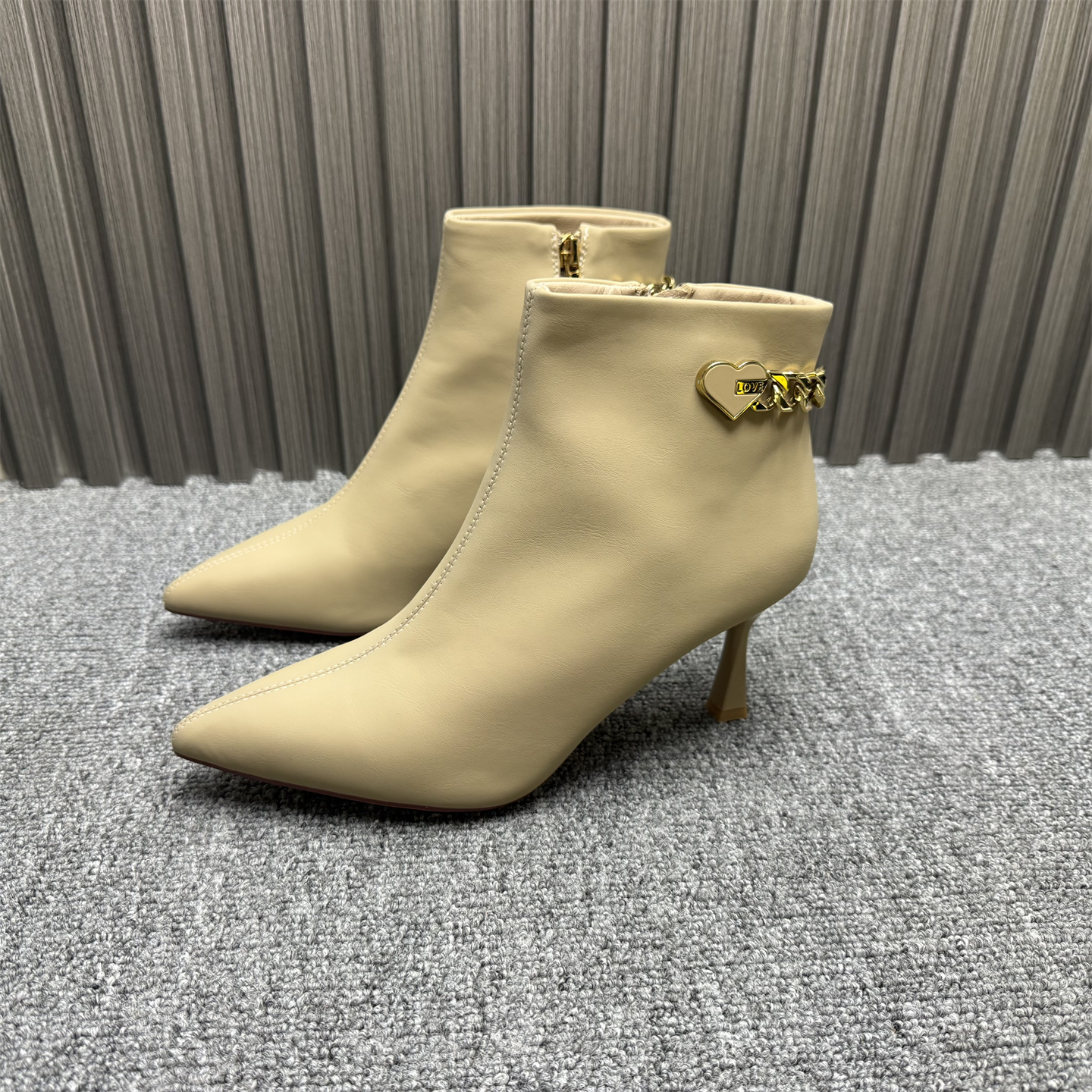 38码瑕疵处理时尚尖头细高跟短靴女秋冬金属链条装饰猫跟时装靴潮
