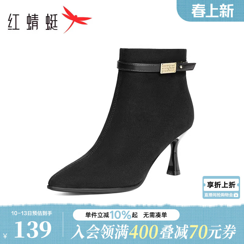 达芙妮尖头细高跟短靴女瘦瘦靴2026新款春季女士磨砂皮靴子马丁靴