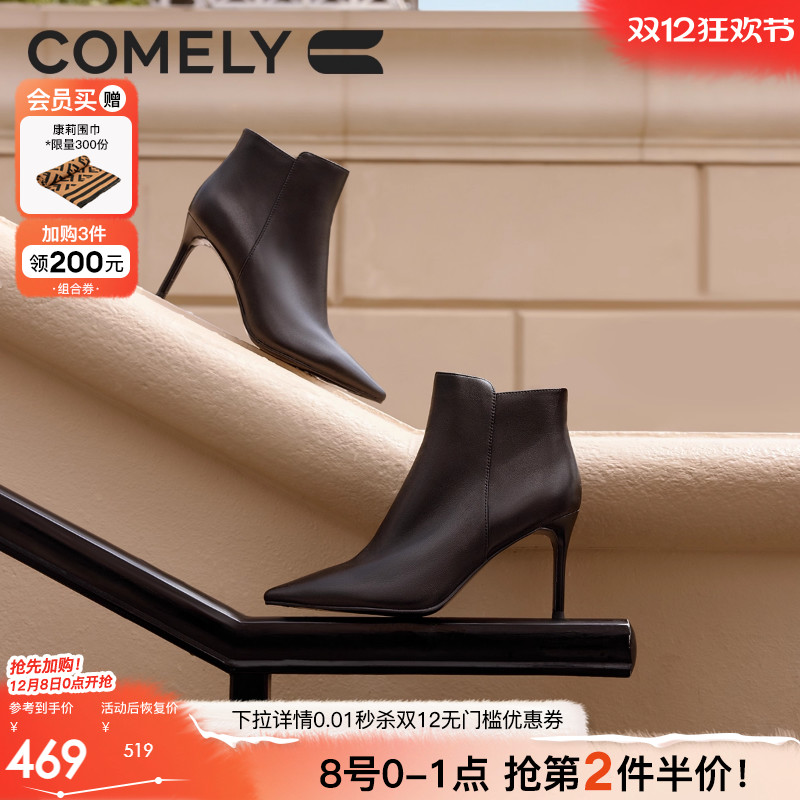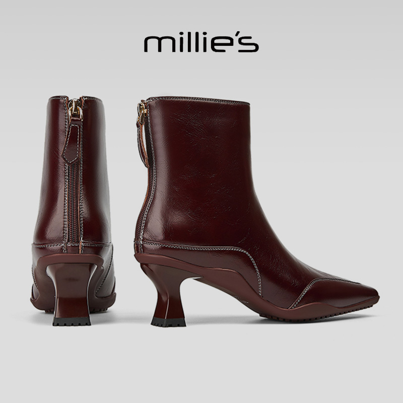MILLIE'S/妙丽2025新款法式复古尖头细高跟短靴女士户外靴