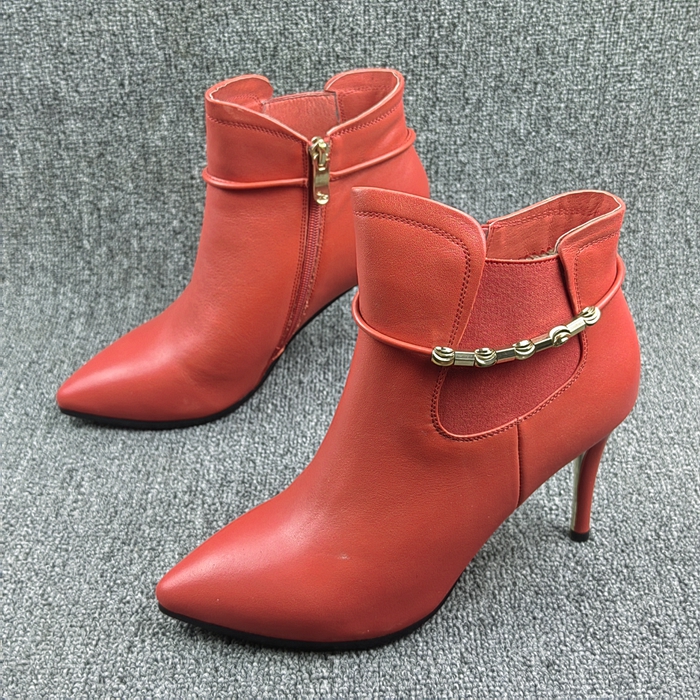 秋冬新款气质简约真皮尖头细高跟短靴女显瘦气质百搭时尚女士皮靴