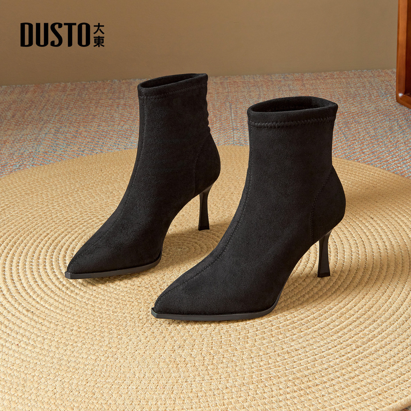 - 尖头细跟短靴