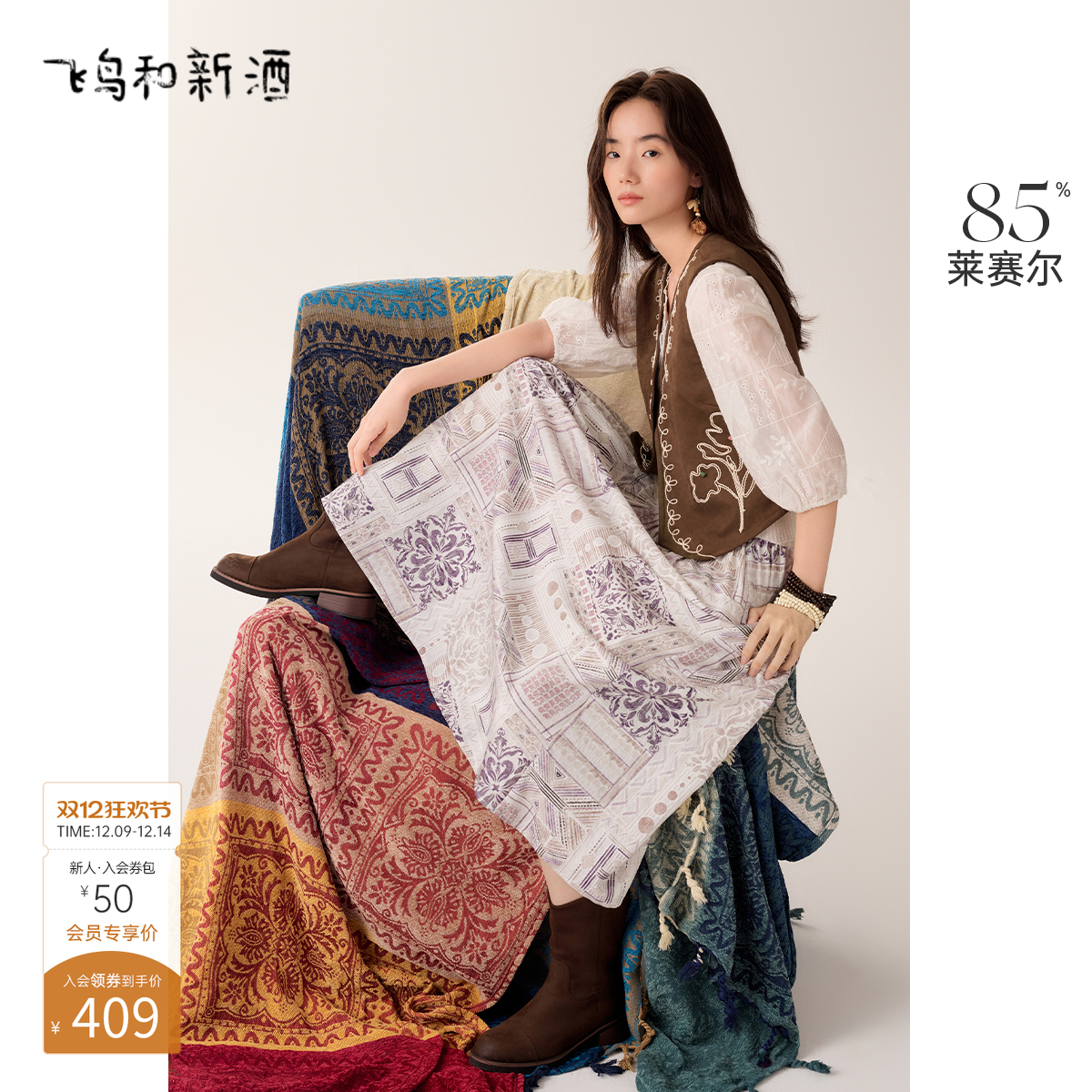 【莱赛尔】飞鸟和新酒2025秋季新款设计感中长款波西米亚风连衣裙