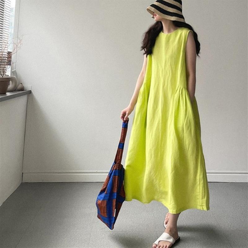 简约时尚波西米亚长裙夏季新款加肥加大无袖圆领印花中长裙连衣裙