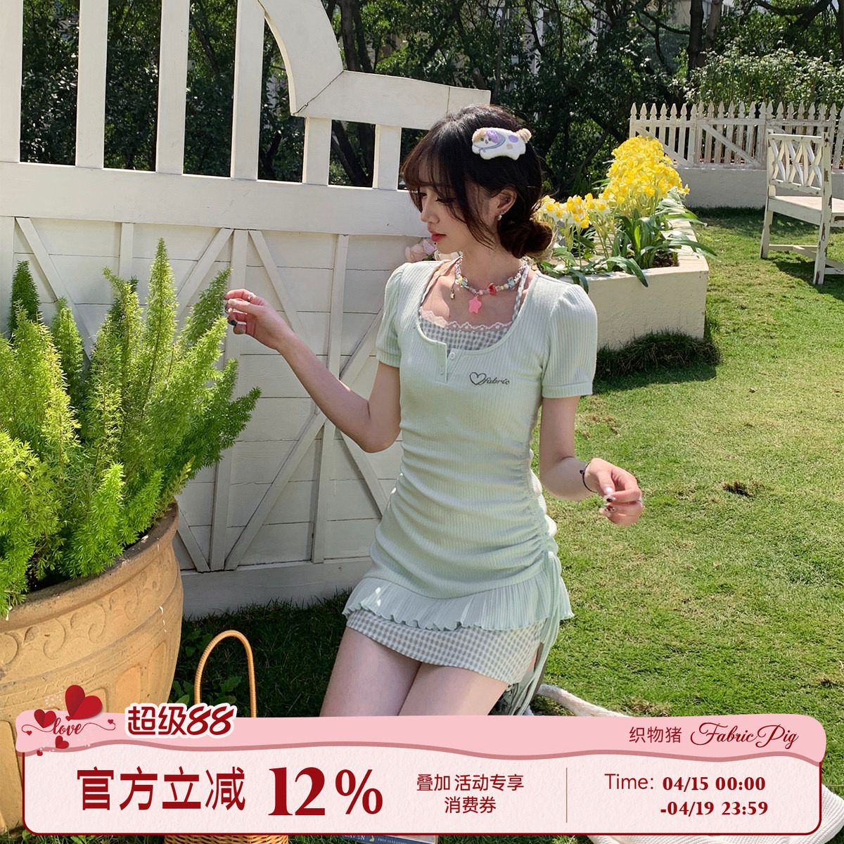 织物猪 海盐甜心 甜欲风针织短袖连衣裙女夏季修身显瘦包臀短裙子