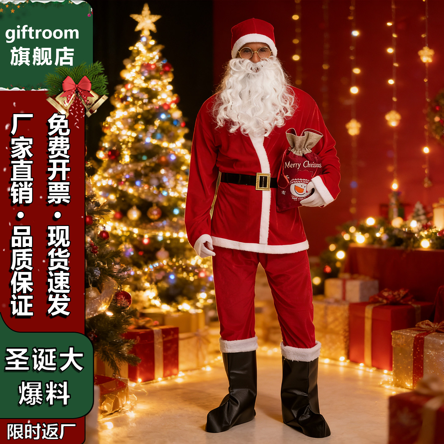 经典原版圣诞老人服装!圣诞节主题装扮cos套装衣服饰演出老爷爷