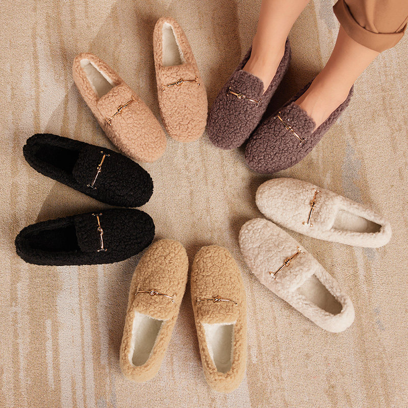毛毛鞋女秋冬季外穿2025年新款加绒网红一脚蹬羊羔毛厚底豆豆鞋子