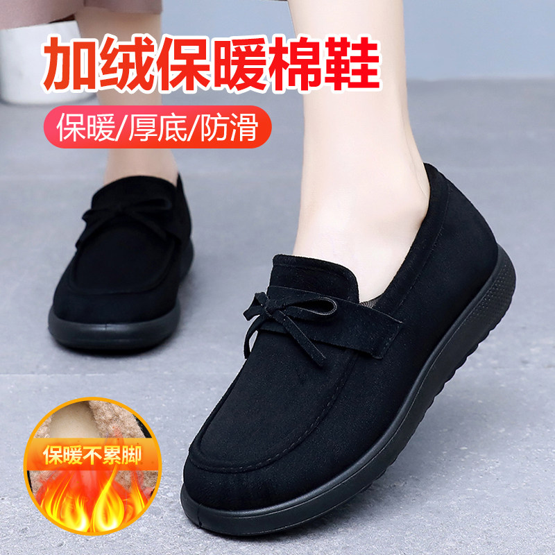老北京布鞋女棉鞋冬季加绒保暖工作鞋软底厚底豆豆鞋妈妈鞋一脚蹬