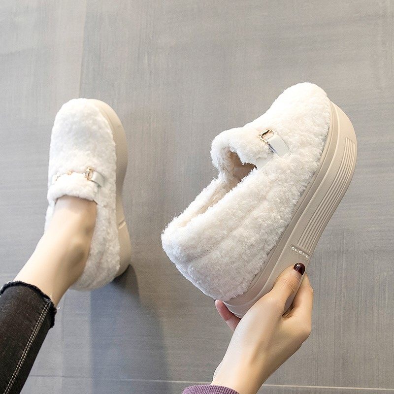 厚底豆豆鞋女冬季老北京布鞋棉鞋加绒保暖乐福鞋一脚蹬外穿毛毛鞋