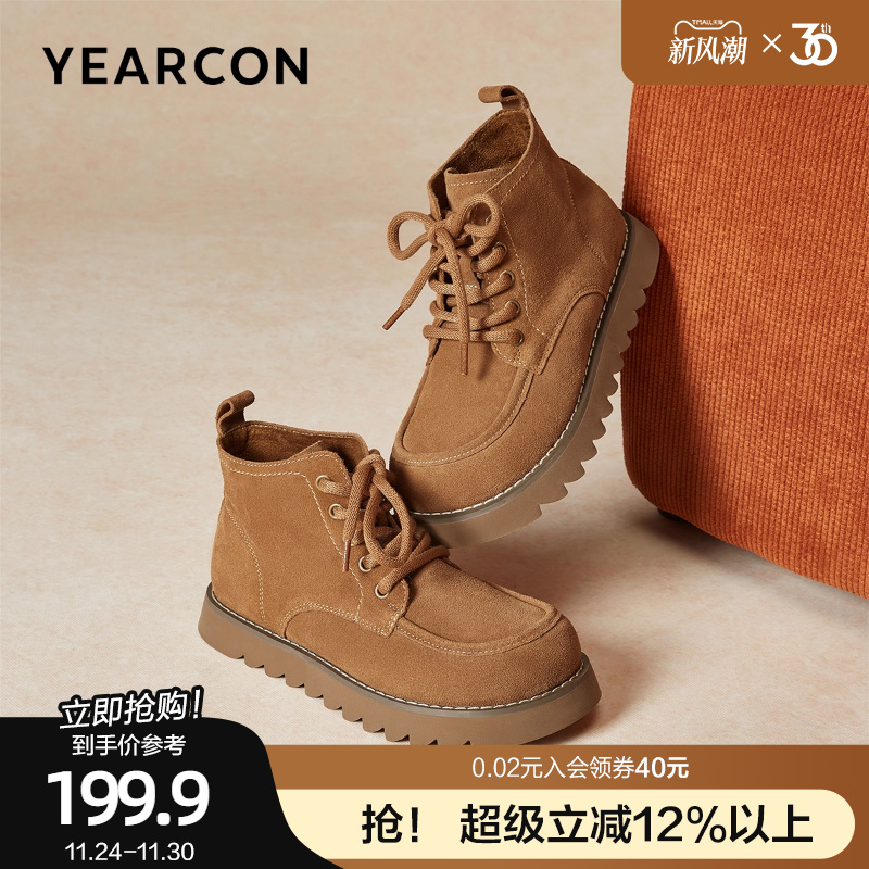 意尔康真皮马丁靴女2025秋冬美拉德英伦风方圆头短靴高帮深口单鞋
