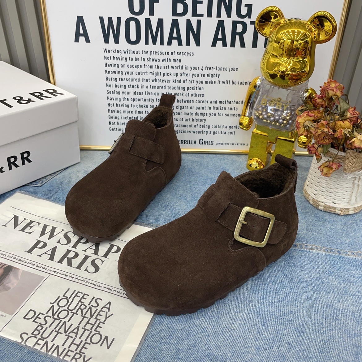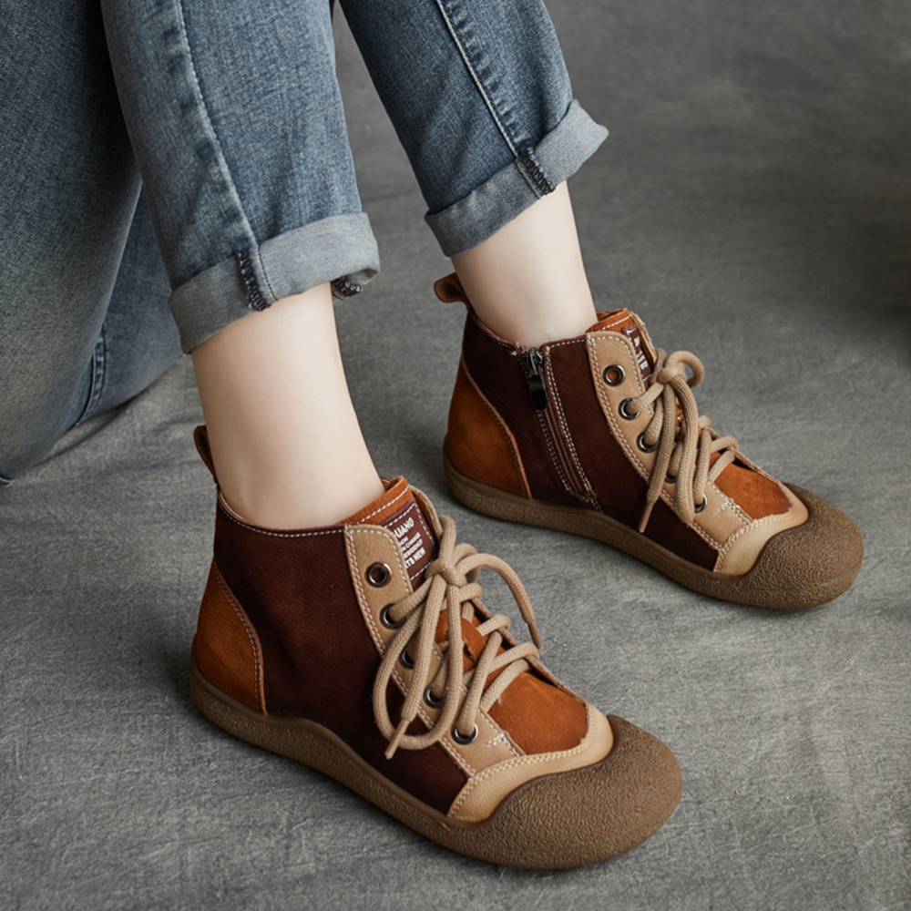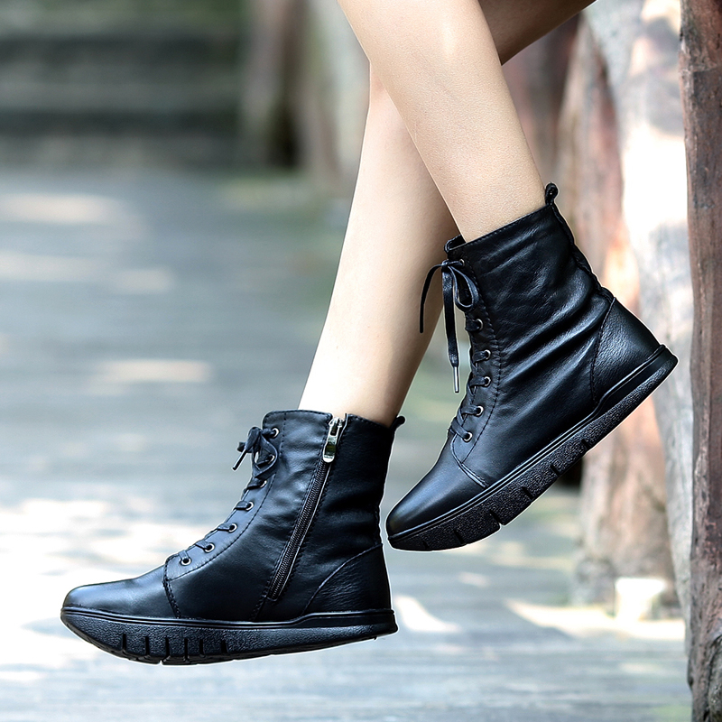 - 平底高帮女鞋真皮